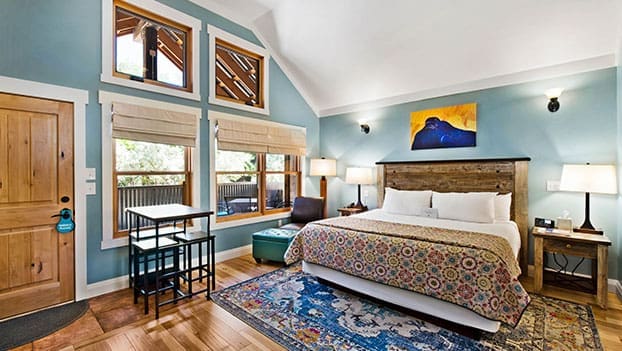 They offer two types of accommodations: a stand alone luxury bungalows with studio style living and their larger one, two & three bedroom townhouses. The bungalows include kitchenettes, vaulted ceilings, private porches with outdoor dining sets and drive-up access. The stylish townhouses have separate bedrooms, complete kitchens and covered decks for outdoor dining. Both types of accommodations include access to our resort amenities.