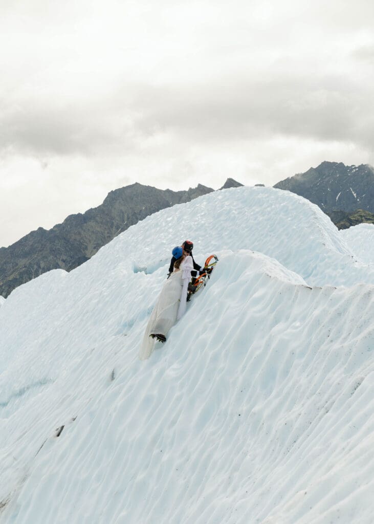 Lori-Beth and Daniel are avid outdoors people so when it came to eloping in Alaska trekking the Matanuska Glacier was a no brainer for them. The glacier tour company offers both self guided and guided walks the glacier caters to all experience levels making a glacier trek perfect for anyone.