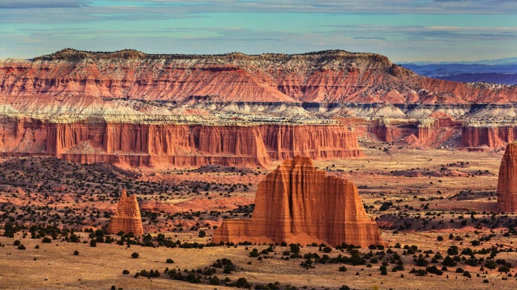 Capitol Reef National Park: It’s quieter, more secluded, and features the Bentonite Hills, which look like someone hand-painted the desert in layers of purple, grey, and rust.
