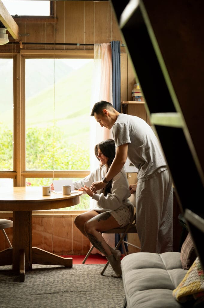 Instead of staying in an outdated hotel room with thin walls, no privacy, and other guests walking the halls, opt to start the day of your elopement in an Airbnb or similar rental property for a more personal and noteworthy experience. By opening up your home base options, you’ll get access to things like hot tubs and private backyards. This is where you’ll be winding down at the end of the day as well, so I encourage my couples to look for places with an iconic view. That way, you can enjoy your morning coffee with a view that gives you a small glimpse into what your day is going to hold, and a place to reminisce under the stars once it’s all said and done.